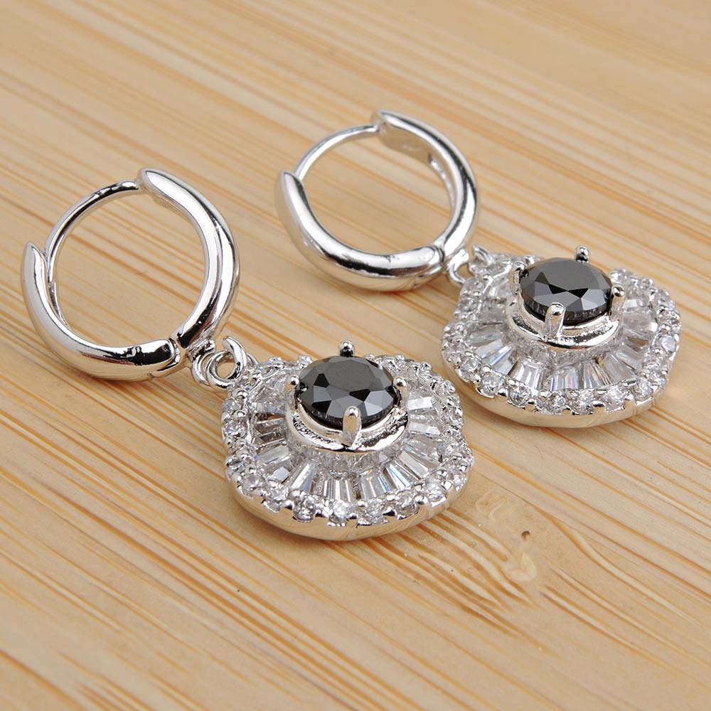 Серьги с английским замком чёрные с родиевым покрытием с цирконами (фианитами)