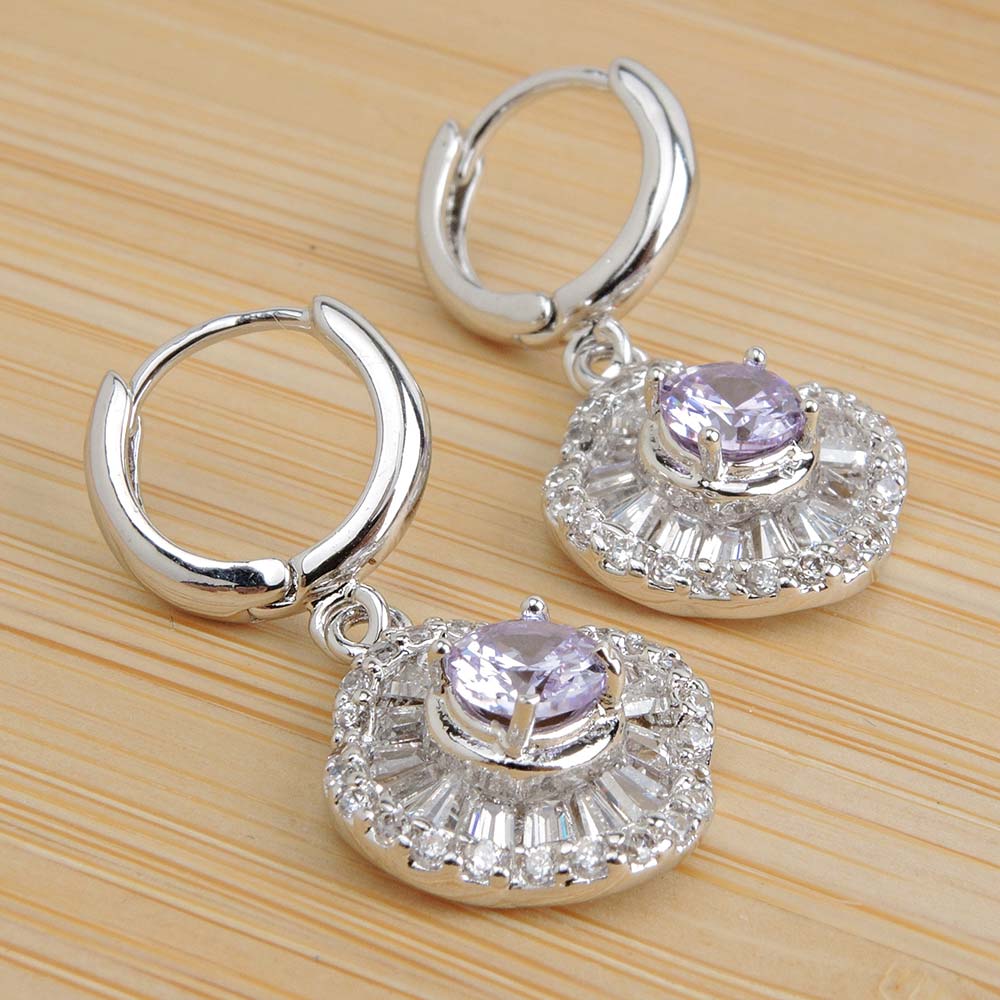 Серьги с английским замком фиолетовые с родиевым покрытием с цирконами (фианитами)