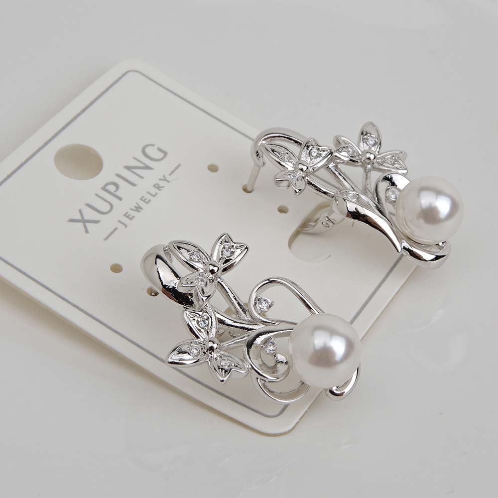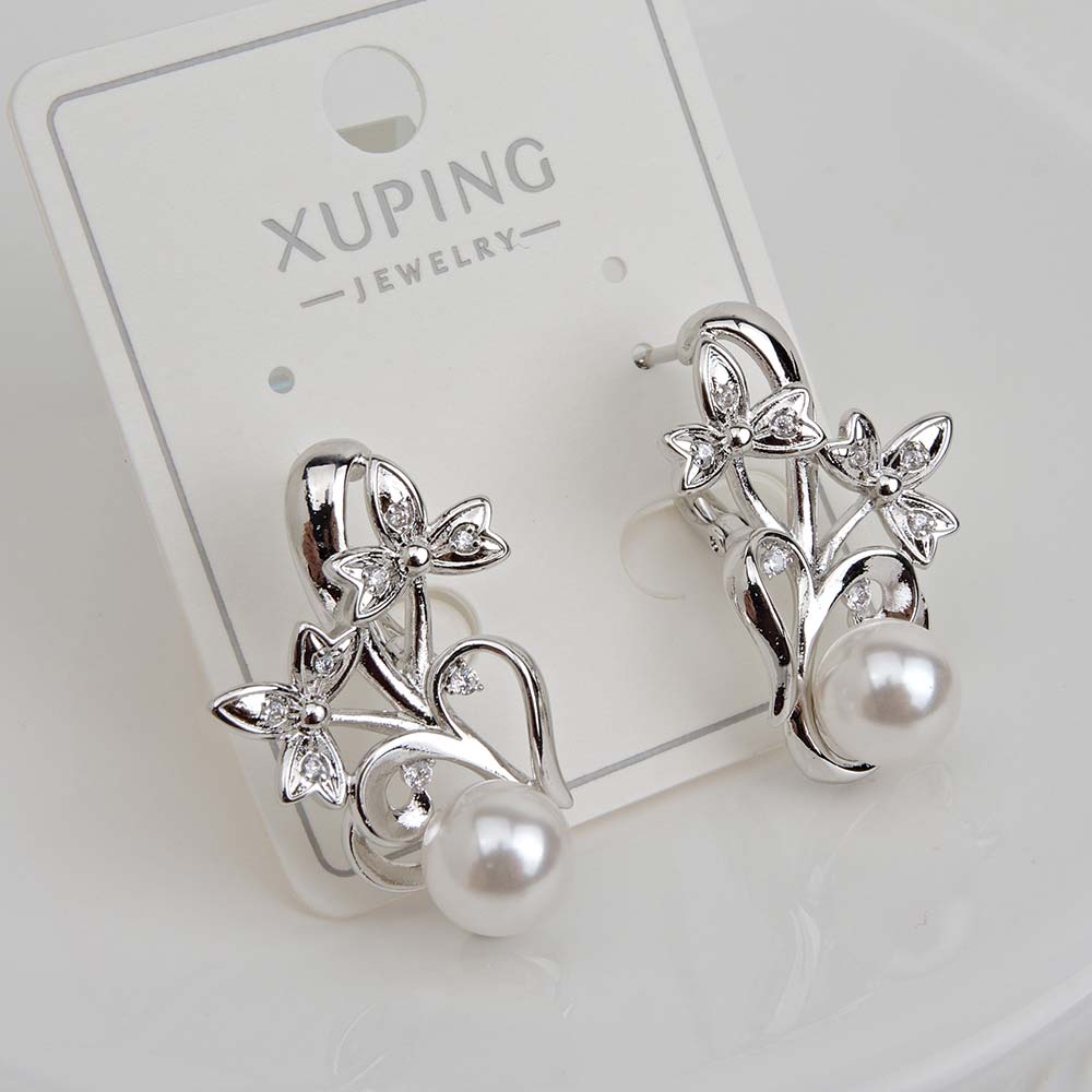 Серьги с английским замком с родиевым покрытием с цирконами (фианитами)