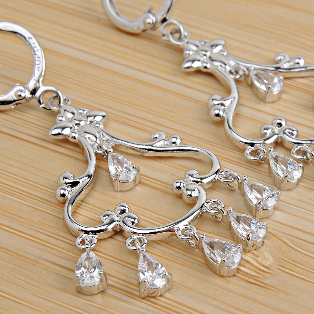 Серьги с английским замком с родиевым покрытием с цирконами (фианитами)