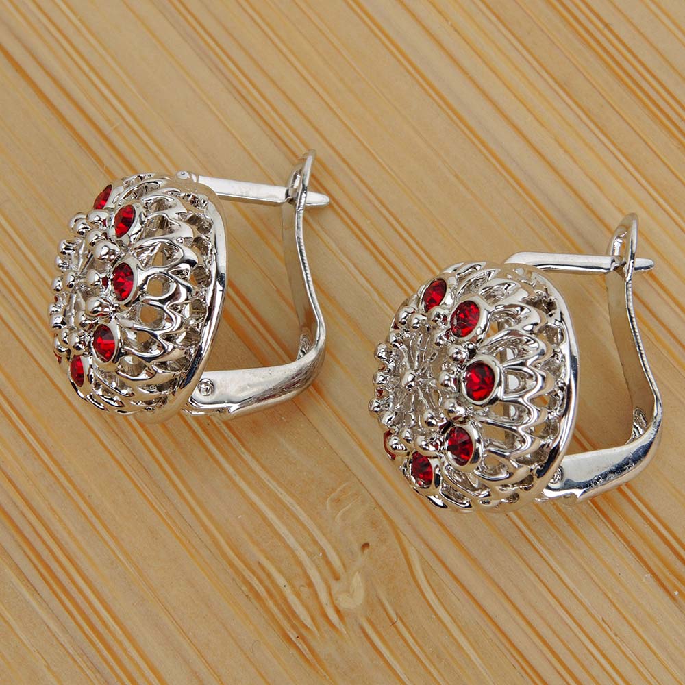 Серьги с английским замком с родиевым покрытием с цирконами (фианитами)