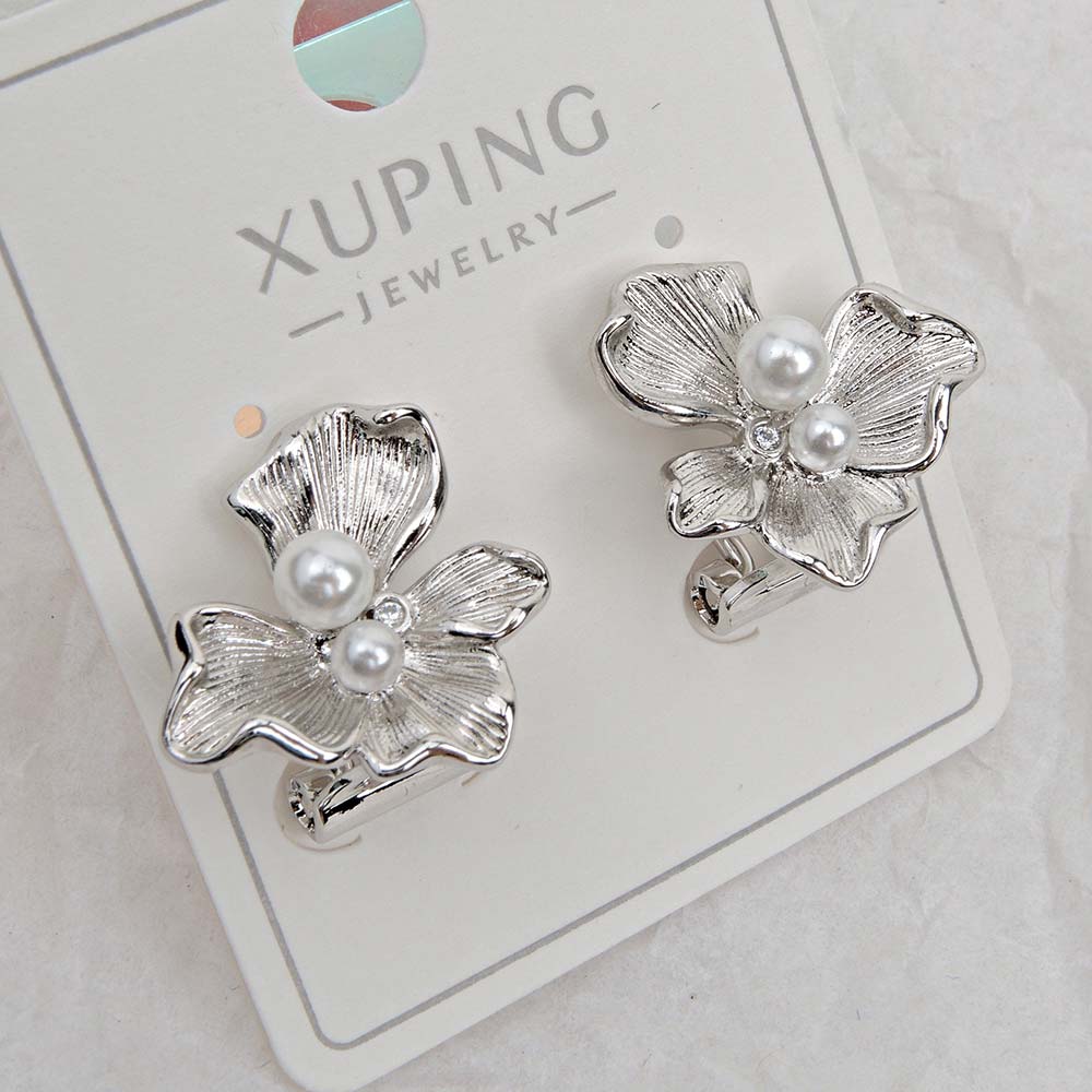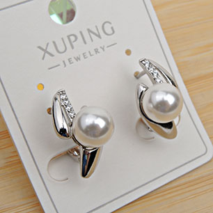 Серьги с английским замком с родиевым покрытием с искусственным жемчугом Майорка (покрытие натуральный перла