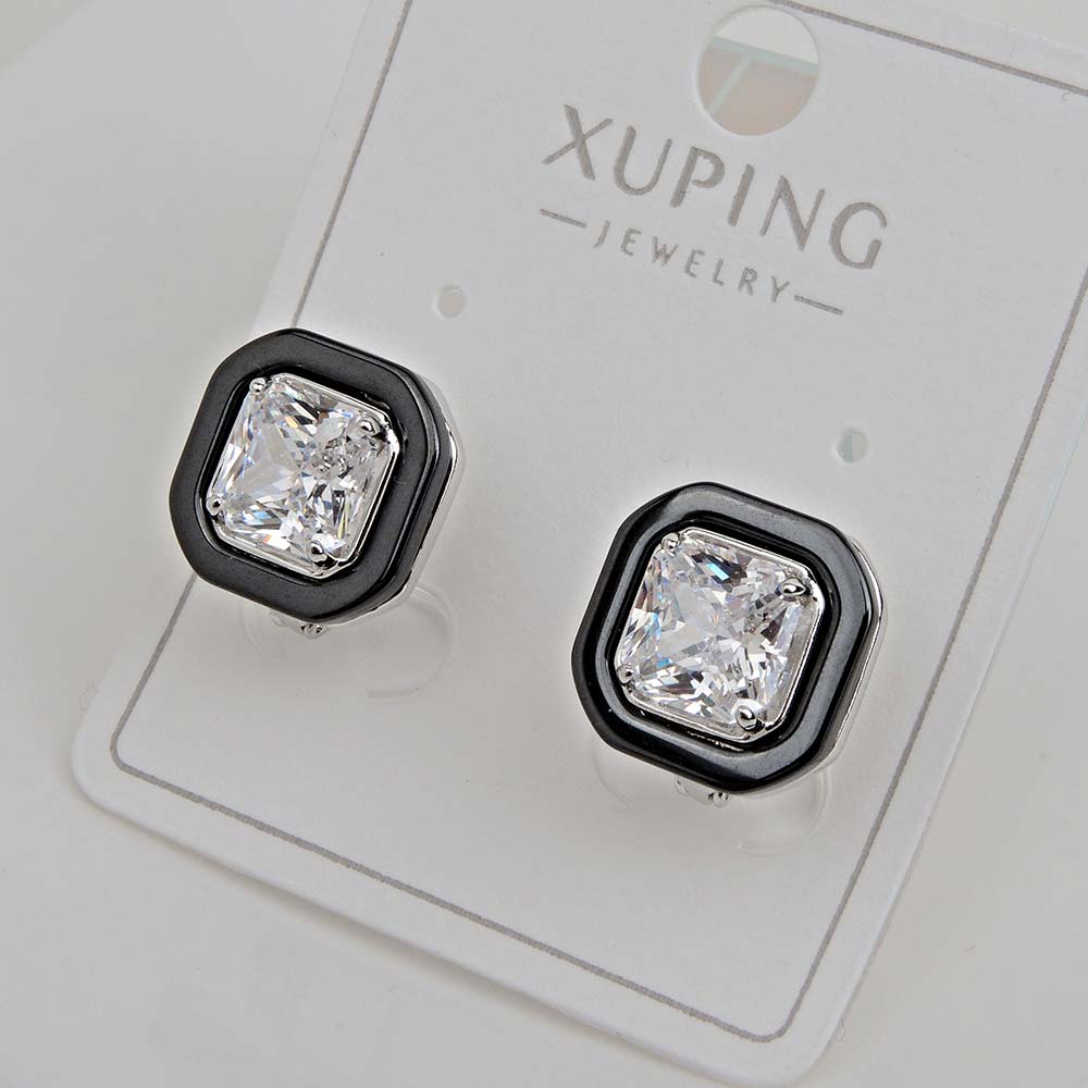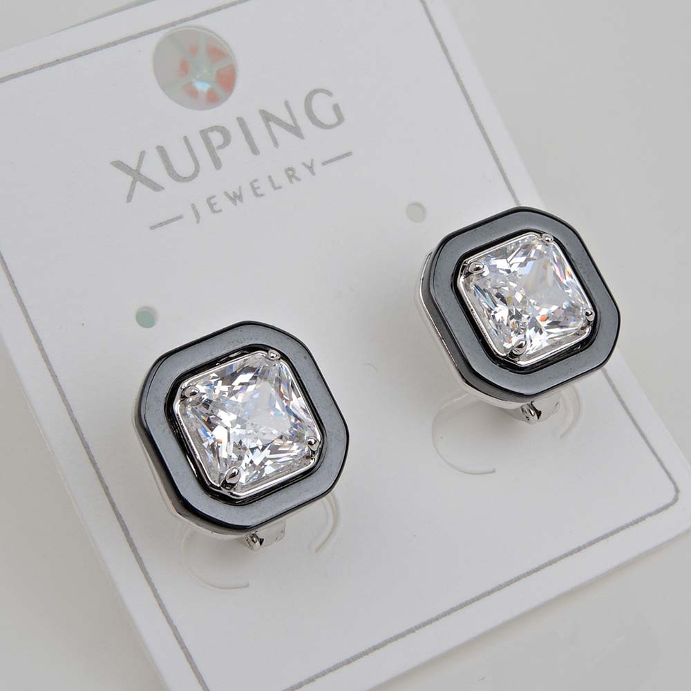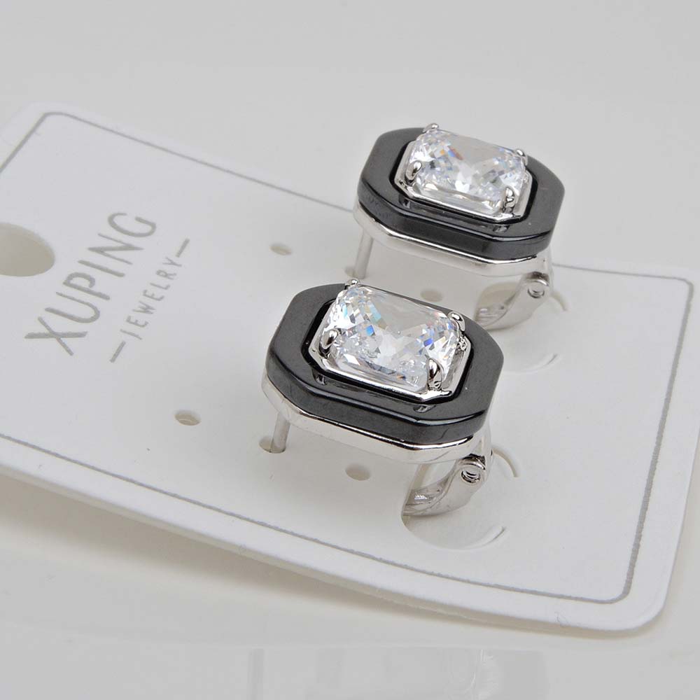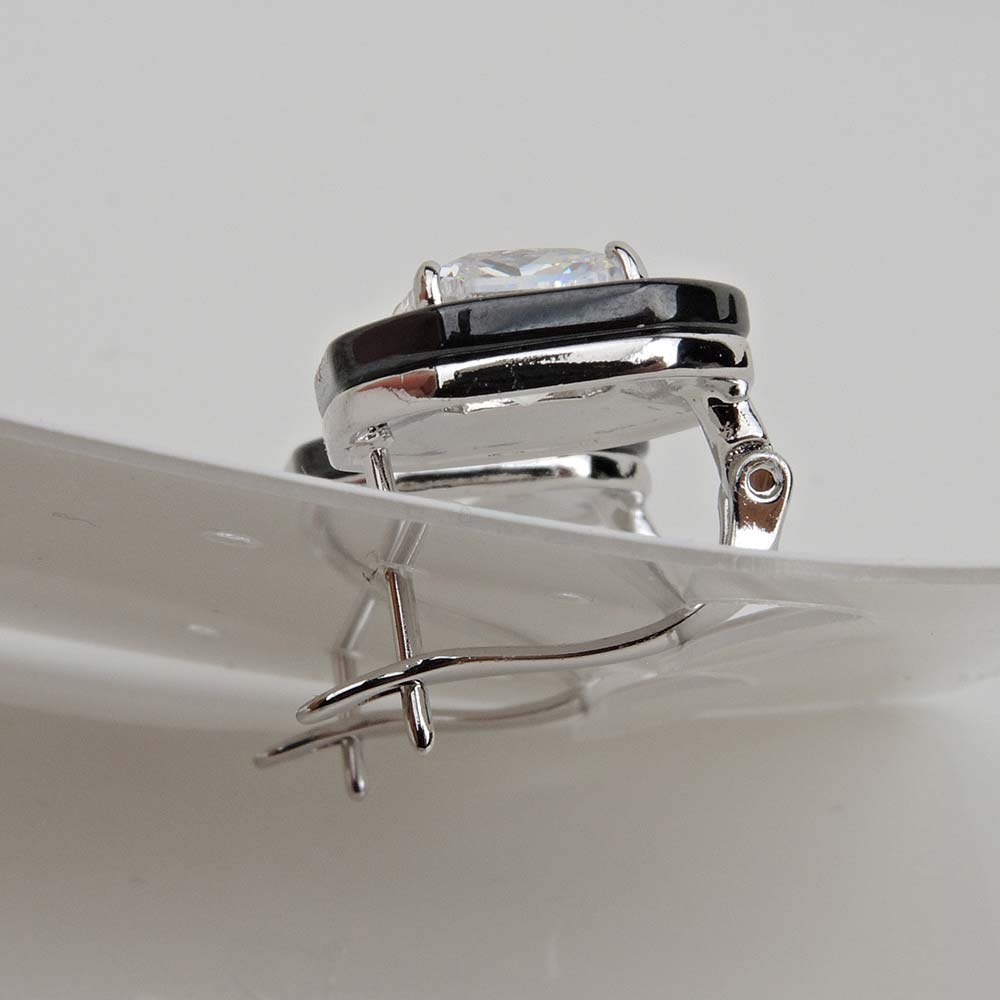 Серьги с английским замком с родиевым покрытием со вставками из керамики