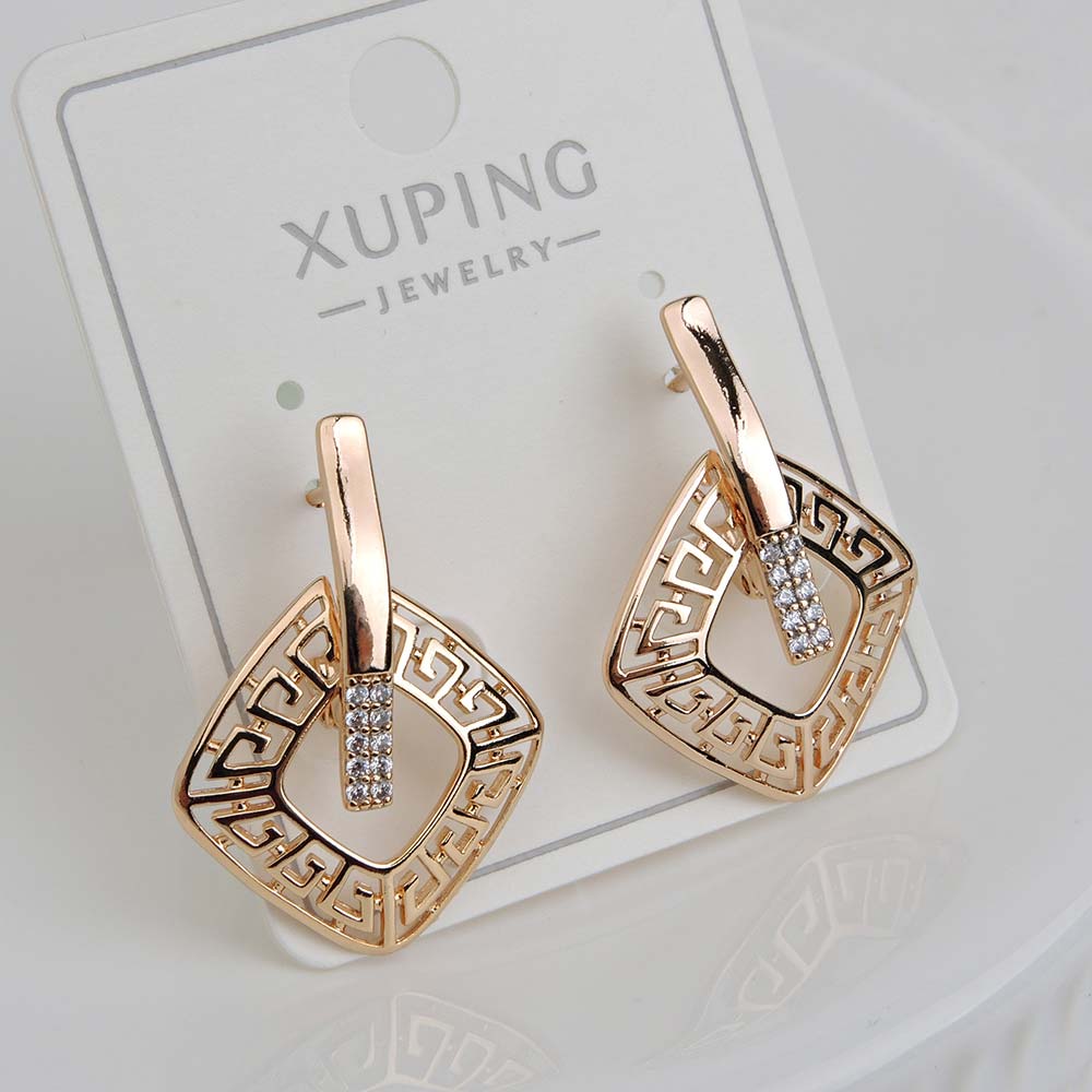 Серьги с английским замком с золотым покрытием 18K 1 мкр с цирконами (фианитами)