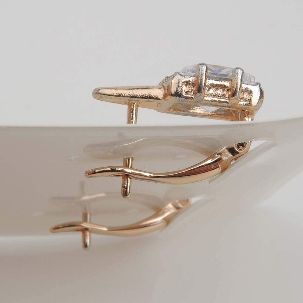 Серьги с английским замком с золотым покрытием 18K 1 мкр с цирконами (фианитами)
