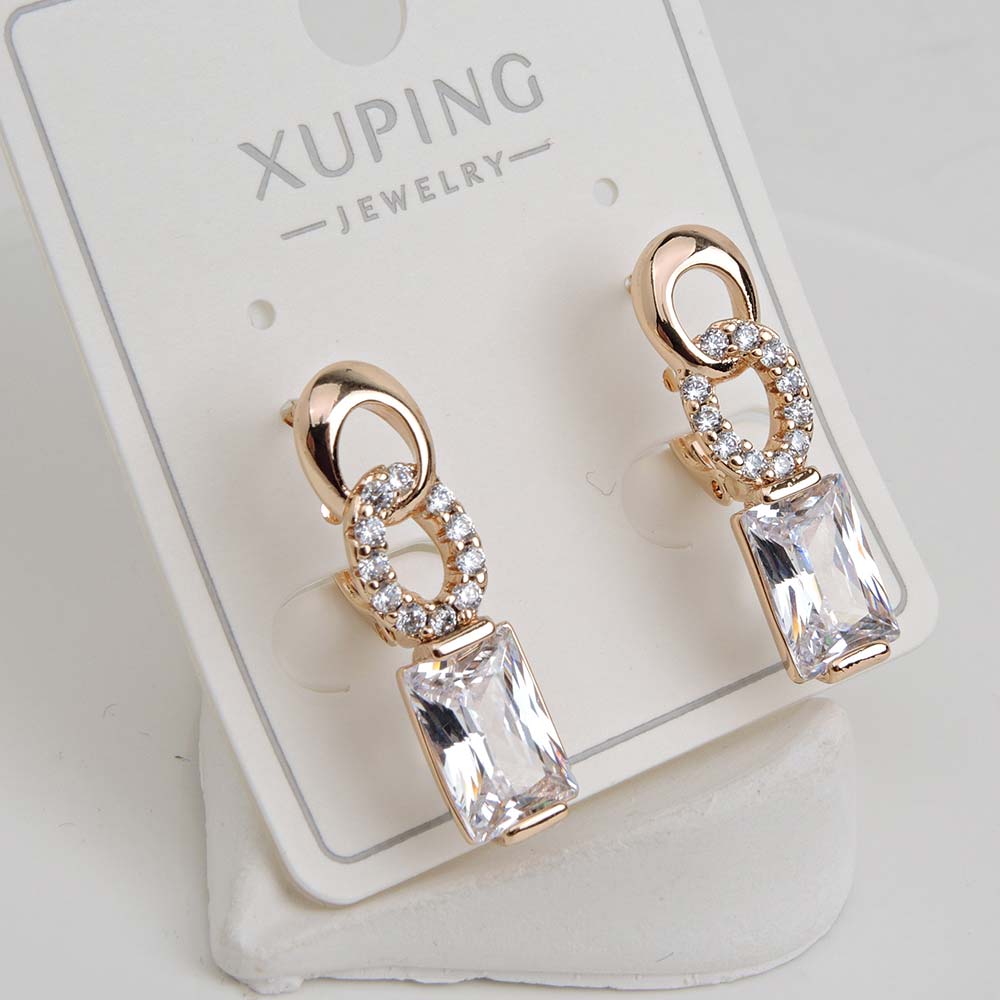 Серьги с английским замком с золотым покрытием 18K 1 мкр с цирконами (фианитами)