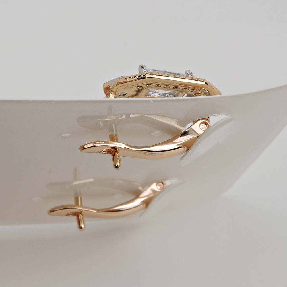 Серьги с английским замком с золотым покрытием 18K 1 мкр с цирконами (фианитами)
