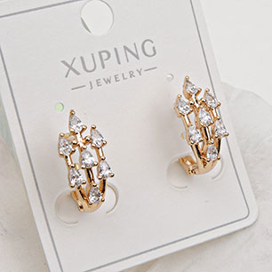 Серьги с английским замком с золотым покрытием 18K 1 мкр с цирконами (фианитами)