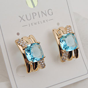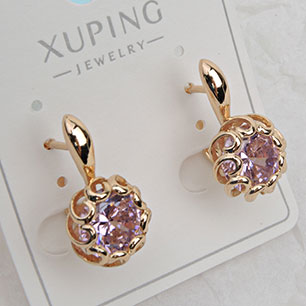 Серьги с английским замком с золотым покрытием 18K 1 мкр с цирконами (фианитами)