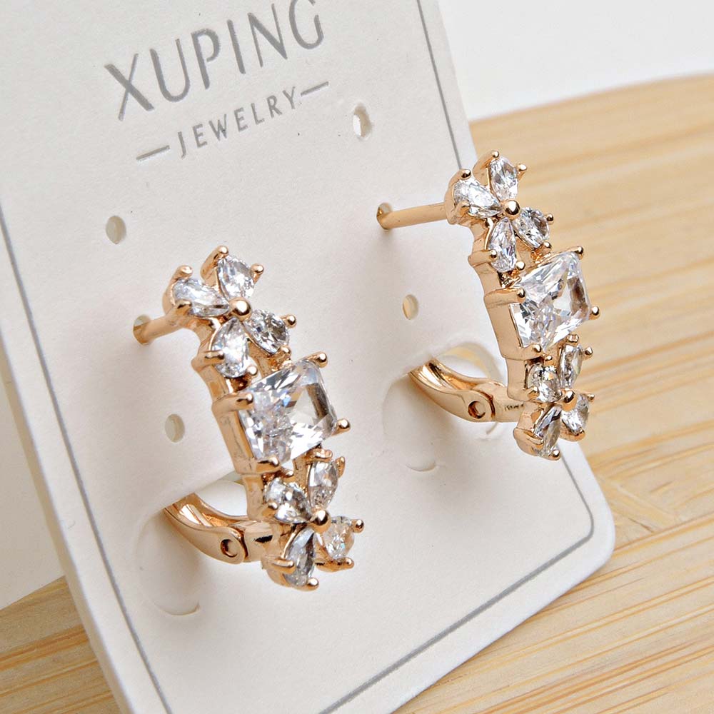 Серьги с английским замком с золотым покрытием 18K 1 мкр с цирконами (фианитами)