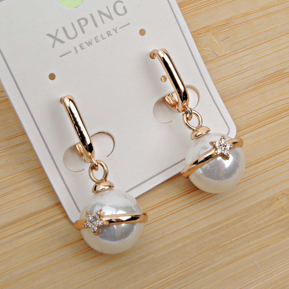 Серьги с английским замком с золотым покрытием 18K 1 мкр с цирконами (фианитами)