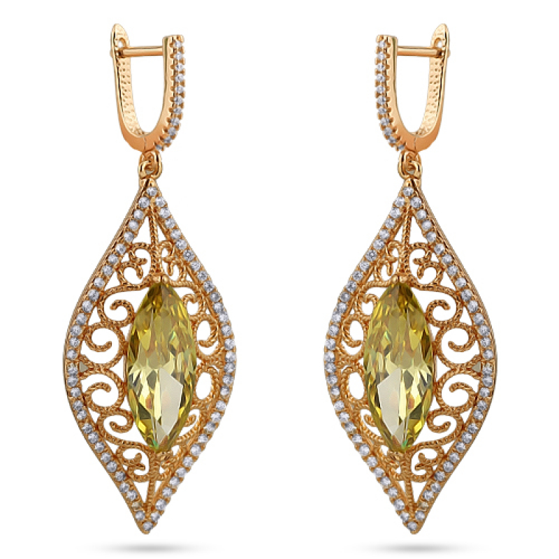 Серьги с английским замком с золотым покрытием 18K 1 мкр с цирконами (фианитами)