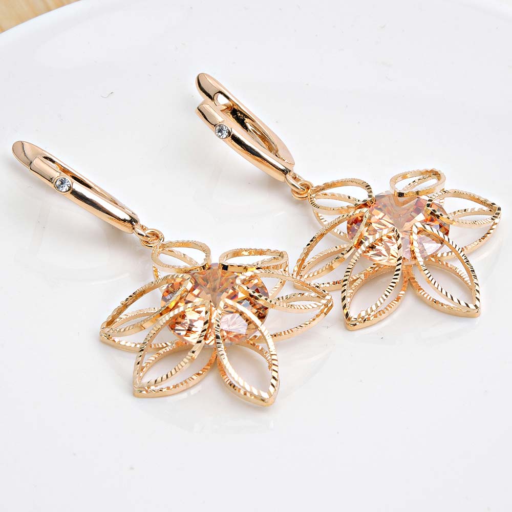 Серьги с английским замком с золотым покрытием 18K 1 мкр с цирконами (фианитами)