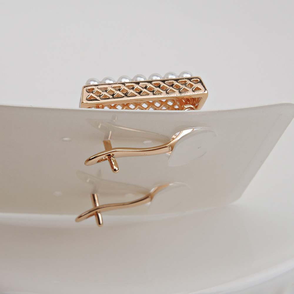 Серьги с английским замком с золотым покрытием 18K 1 мкр с искусственным жемчугом Майорка (покрытие натуральный перла