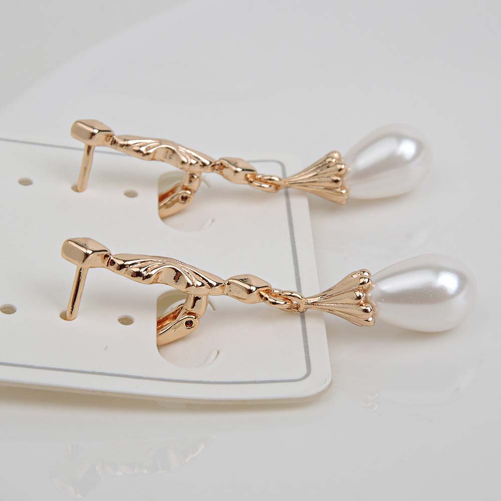 Серьги с английским замком с золотым покрытием 18K 1 мкр с искусственным жемчугом Майорка (покрытие натуральный перла