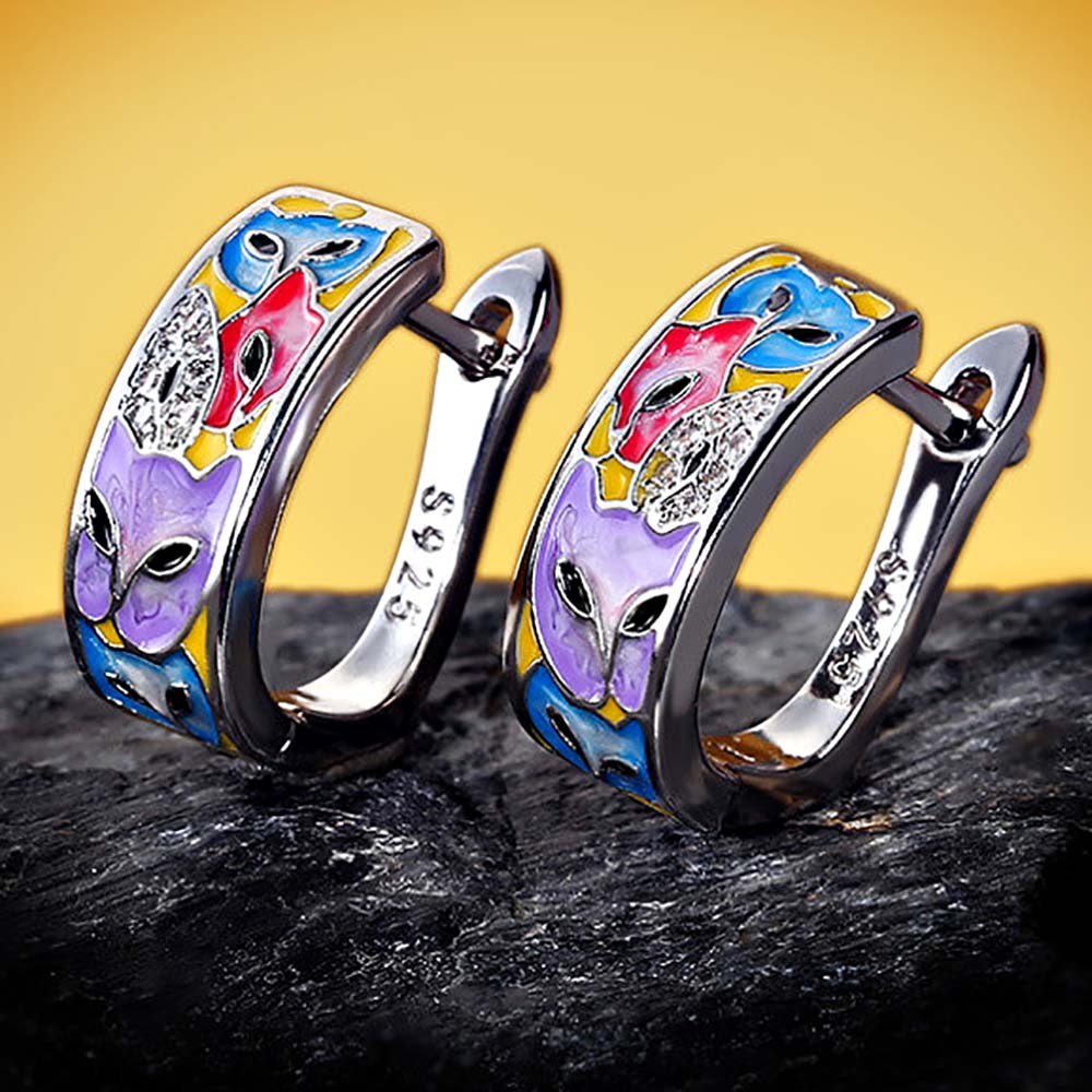 Серьги с английским замком в винтажном стиле с родиевым покрытием с эмалью