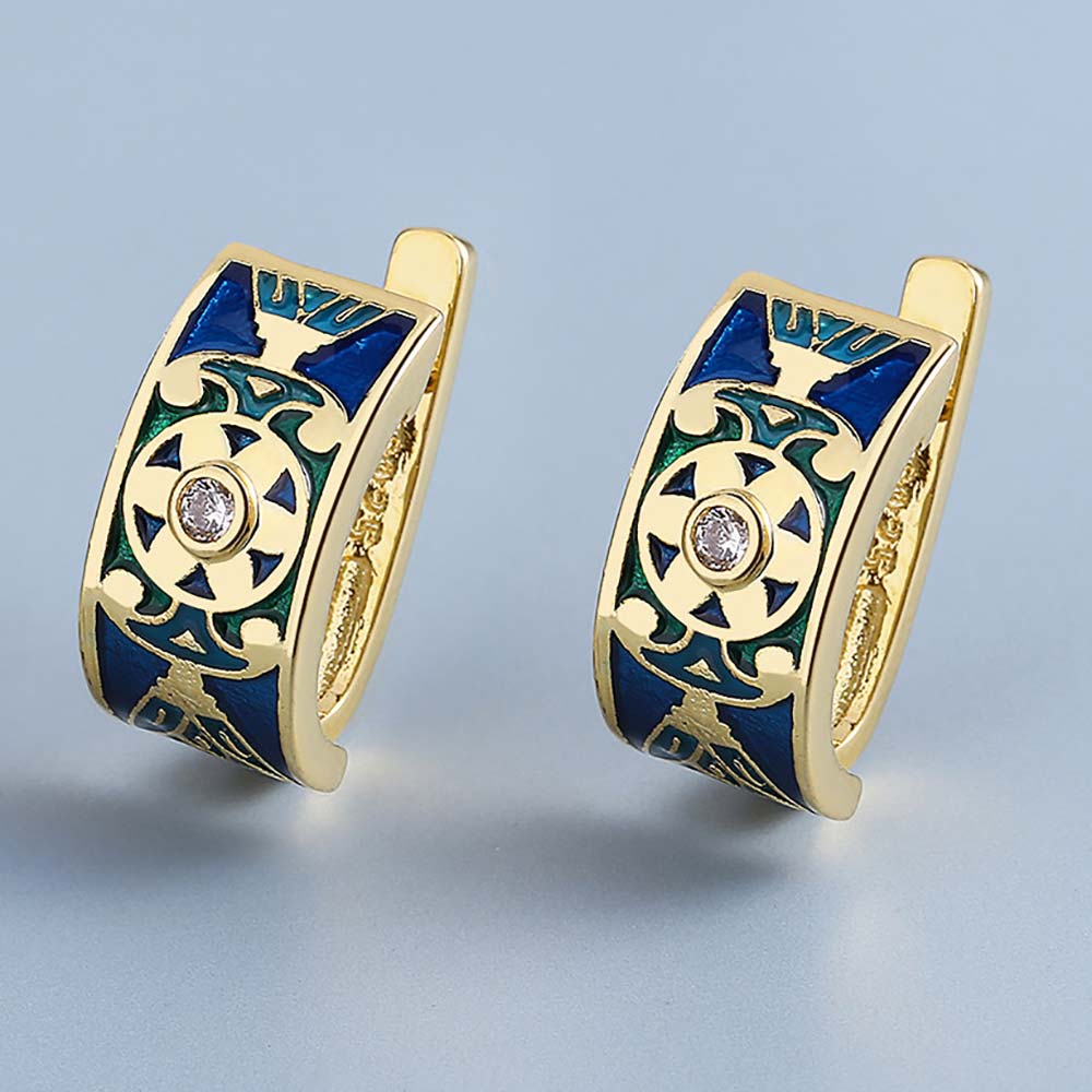 Серьги с английским замком в винтажном стиле с золотым покрытием 14K 1 мкр с эмалью