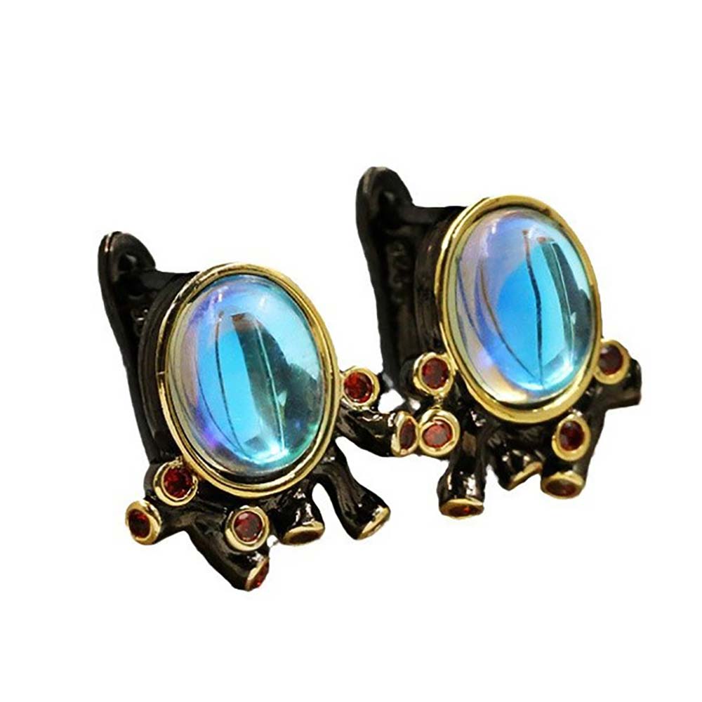 Серьги с английским замком в винтажном стиле с золотым покрытием 14K 1 мкр с лунным камнем