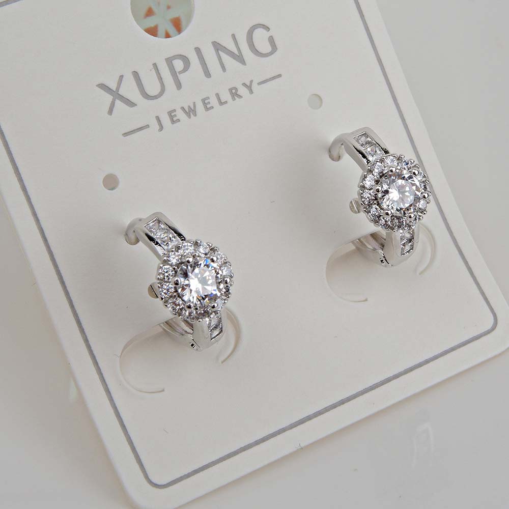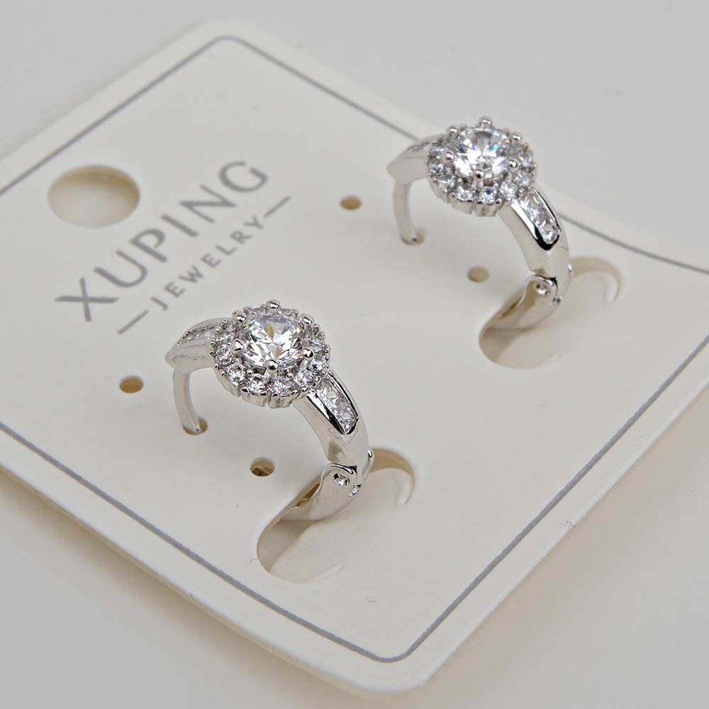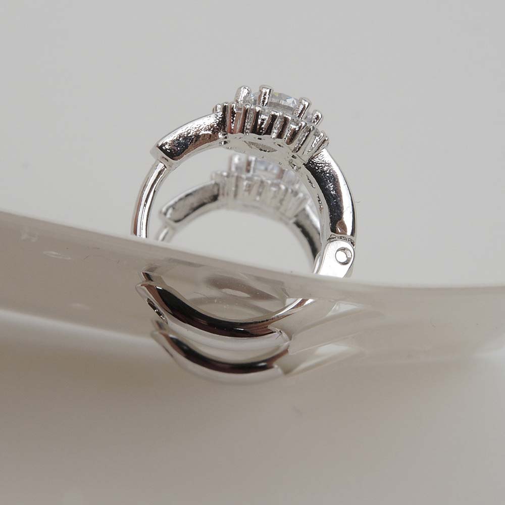 Серьги с замком кольцо с родиевым покрытием с цирконами (фианитами)