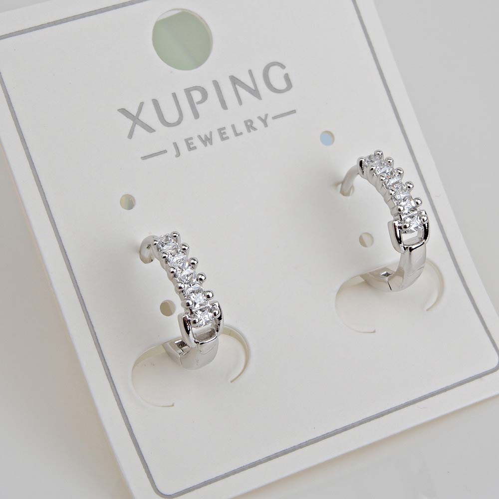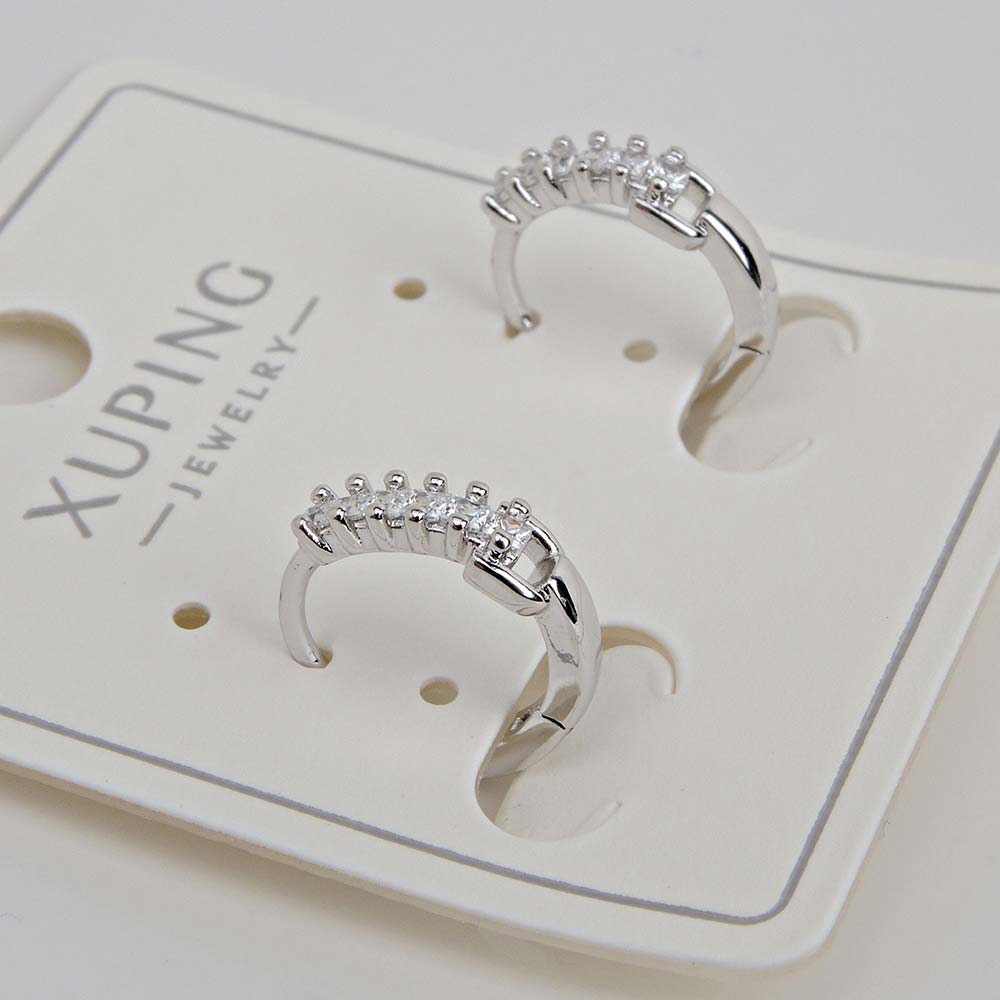 Серьги с замком кольцо с родиевым покрытием с цирконами (фианитами)