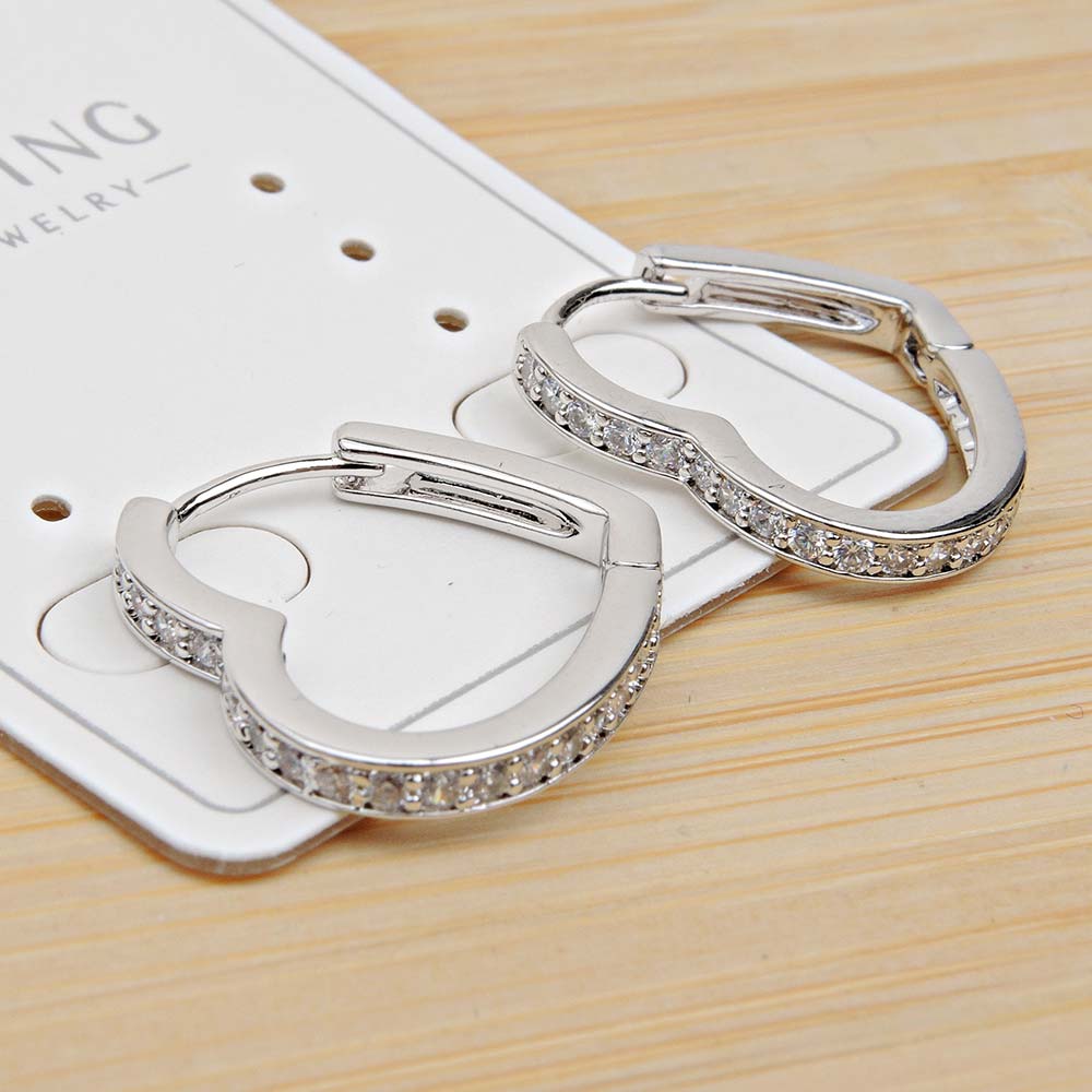 Серьги с замком кольцо с родиевым покрытием с цирконами (фианитами)