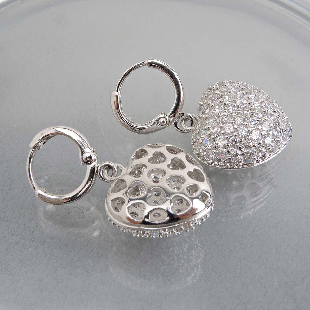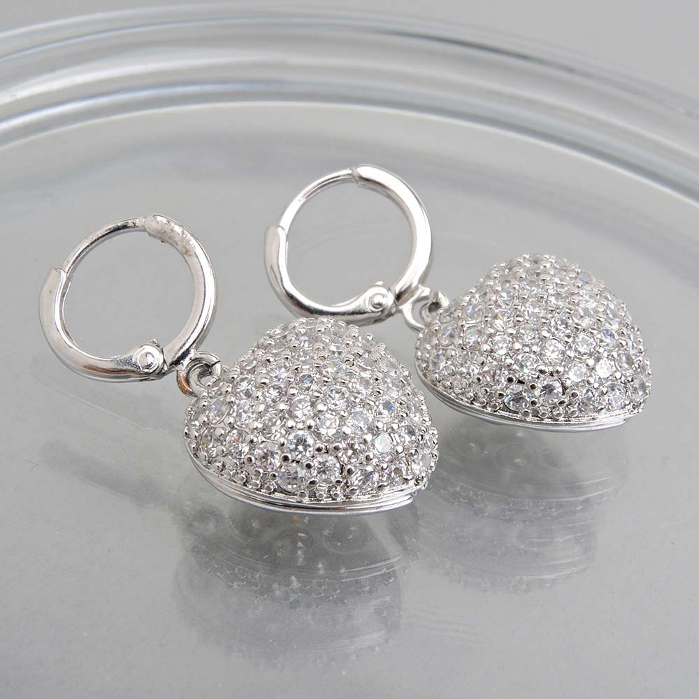Серьги с замком кольцо с родиевым покрытием с цирконами (фианитами)