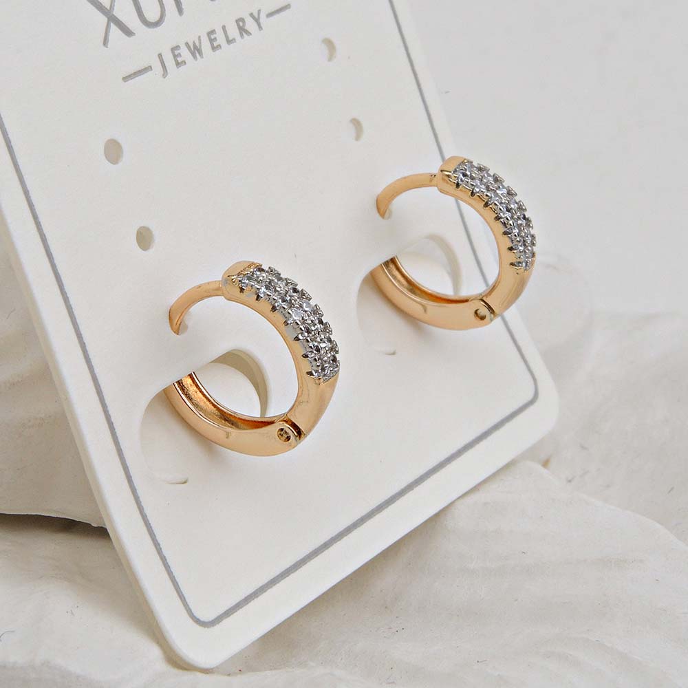 Серьги с замком кольцо с золотым покрытием 18K 1 мкр с цирконами (фианитами)