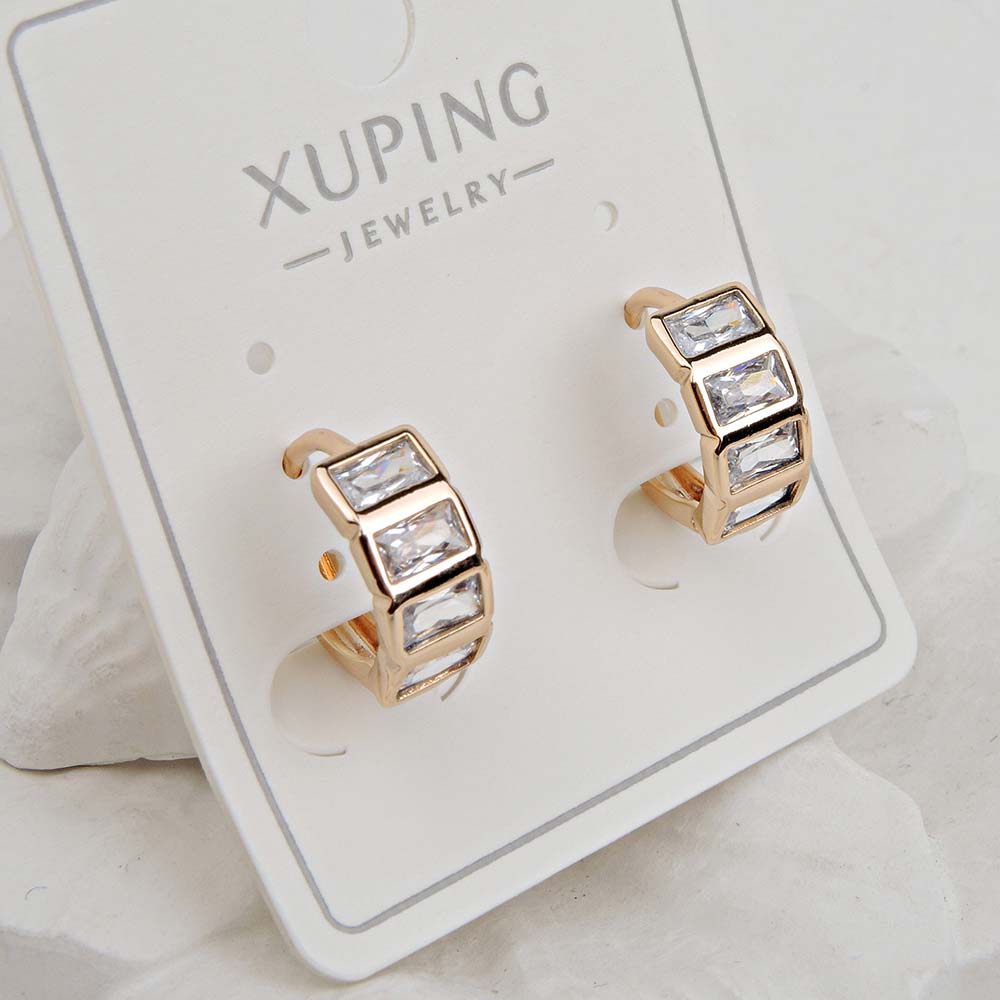 Серьги с замком кольцо с золотым покрытием 18K 1 мкр с цирконами (фианитами)
