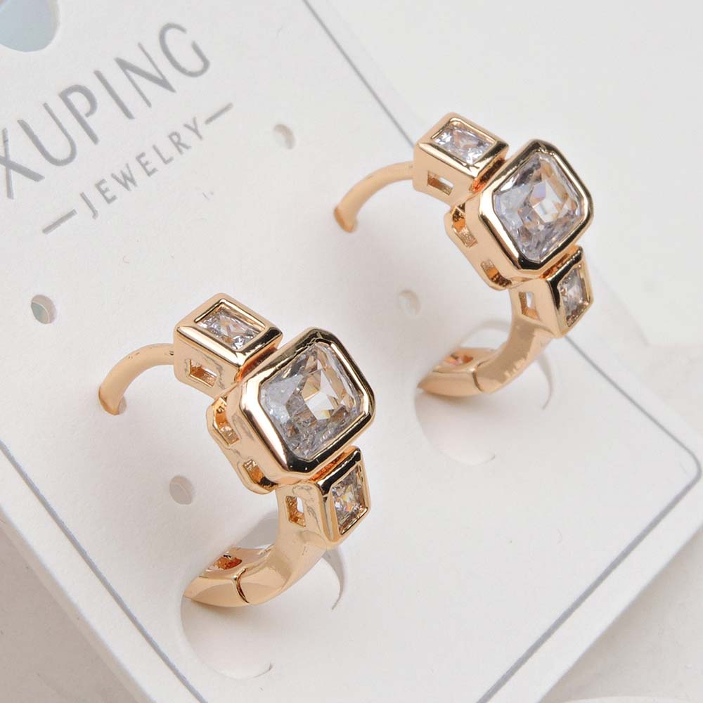Серьги с замком кольцо с золотым покрытием 18K 1 мкр с цирконами (фианитами)