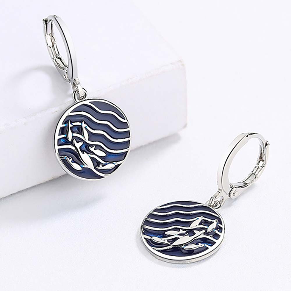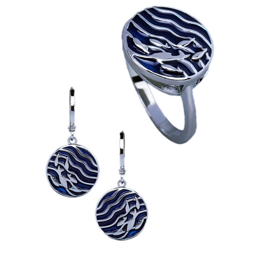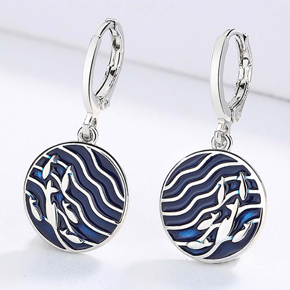 Серьги с замком кольцо в винтажном стиле с родиевым покрытием с эмалью